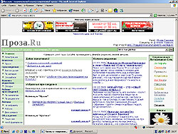 Сайт “Проза.Ру” (http://www.proza.ru) представляет собой целое издательство, это одновременно электронная библиотека современной русскоязычной поэзии и творческая среда, предоставляющая авторам возможность публикации произведений, обмена рецензиями и взаимной оценки творчества. “Проза.Ру” – виртуальный литературный клуб, в который могут вступить все желающие. На сайте работает редколлегия и создана система конкурсов для определения лучших произведений.