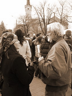 Взрослый народ ведет себя взросло и достойно. Поэтому дневной митинг обошелся без эксцессов. Люди втыкали гвоздики в забор, раскладывали их по асфальту - мило и оригинально. Выходит некий крик о помощи. Отчаяние без границ. Но цветы полиция зачем-то выдергивала. К чему? Для чего? Мешают, что ли? Мгновенно подбегали ОРТ и РТР, и снимали плачущих женщин, рассказывающих, как полиция выдергивает гвоздики. Отлично! Выйдет замечательный репортаж!..