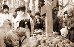 | Год назад, 30 октября 2006 года, в День памяти жертв политических репрессий в Пскове можно было поклониться только деревянному кресту у храма Александра Невского. Фото: Глеб Костин |
