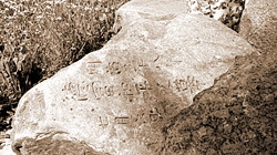 | Сейчас в Медведе хранятся 10 камней с иероглифами. Они вывезены со старого офицерского кладбища и свалены на квадратной бетонной площадке в центре села. Фото: Александр Тимофеев |