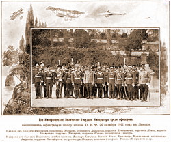 | Государь Император Николай II среди военных летчиков. Фото 1911 г. |