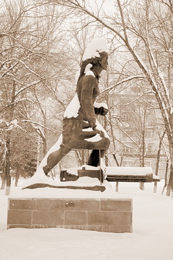 | Невельский район и в военное, и в мирное время находится на передовой. На фото – памятник Герою Советского Союза, участнице боев за Невель Маншук Маметовой. Фото: Лев Шлосберг |