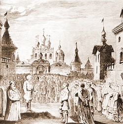| Эскиз декораций к историческим постановкам оперы «Псковитянка» в Москве. |