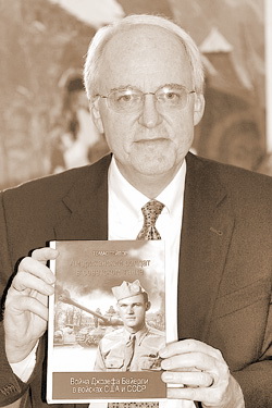 | Посол США в России Джон Байерли с книгой о судьбе своего отца. Фото: Лев Шлосберг |