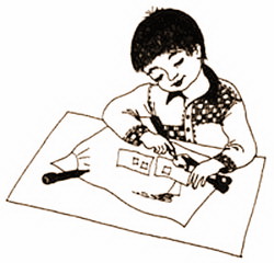 - Да, видишь, лужа. Дяде нужны сапоги, - обувь немедленно прорисовывается к спичкообразным ножкам.