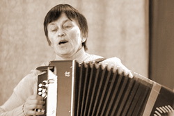 Уборщица Татьяна Мазетова поздравила родную школу песней собственного сочинения. Фото: Лев Шлосберг