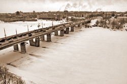 | Ольгинский мост с высоты смотровой площадки Власьевской башни выглядит вполне устойчивым. Фото: Лев Шлосберг |