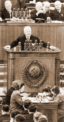 Н. С. Хрущев на трибуне во время ХХ съезда КПСС. 14 февраля 1956 г.