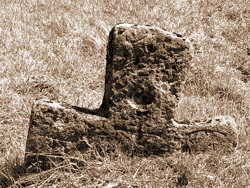 Крест на Савкиной Горке (государственный музей-заповедник «Михайловское»). Атрибутирован неправильно (крест и постамент – разного времени), был разбит и склеен, не изучен, происхождение неизвестно. Фото: Александр Потравнов