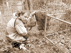 Художник Александр Стройло собрал множество изображений каменных крестов и решил от рисунков перейти к самим предметам. Фото: Лев Шлосберг