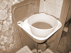 | Раковина в доме инвалида войны используется только как подставка для тазов: водопровода в доме нет. Фото: Александр Богач |