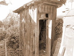 Камера бесстрастно зафиксировала, как в доме, которому скоро исполнится 50 лет, разрушается фундамент, как старая водопроводная труба заканчивается над раковиной не привычным краном, а заглушкой. И вместо крана над раковиной висит рукомойник. Как хромой старик, постоянно пользующийся костылями, ходит с ведром к колодцу за водой. Поставили камеру перед крыльцом, подняли объектив вверх, а там, сквозь слуховое окно виден старый, с множеством отверстий, рассыпающийся от ветхости шифер. Вид во дворе: туалет перекосился, в бане полы прогнили.