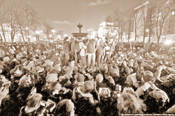 Тем временем на сцене и под сценой на Манежной площади соединились безответственная власть и послушная часть народа: Трофим, Владимир Путин, Михаил Боярский, Дмитрий Медведев, Леонид Агутин, Сергей Собянин, группы «Рондо», «Любэ» и самая многочисленная группа – сотрудники ГУПов, администраций, государственных акционерных обществ и «туристы» из провинции.
